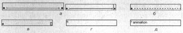 Представление анимации во временной диаграмме Кадрированная и пошаговая анимации различным образом отображаются во временной диаграмме:
