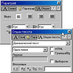 Управление макетом страницы Flash 5 обеспечивает полный контроль над макетом страницы, текстом, изображениями и анимацией. Дизайнерам-экспериментаторам понравятся точность и гибкость, предоставляемая новой версией Flash, когда каждый элемент находится под контролем. Макеты хорошо выглядят в различных браузерах и с разными шрифтами - и это не сказывается на размере файла! Во Flash 5 можно создавать макеты, используя любые шрифты TrueType или Macintosh Postscript. ![]() Рис. 15.10. Окно Sound Settings Поля сбора данных на основе Flash Flash 5 позволяет объединять поля сбора данных с приложениями для электронной торговли (рис. 15.11). Flash Player обеспечивает передачу информации на Web-сервер таким образом, что поля можно использовать для ввода пароля, при этом введенный текст отображается в виде звездочек. Данные можно передавать сценариям CGI, что позволяет взаимодействовать с Microsoft Active Server Pages, Allaire ColdFusion и Macromedia Generator Enterprise Edition Server (рис. 15.12). Рис. 15.11. Создание полей сбора информации ![]() Рис. 15.12. Flash Player обеспечивает корректное воспроизведение на различных браузерах и платформах Карта полосы пропускания Flash 5 отображает в графическом виде загрузку отдельной сцены или всего фильма. Задайте предположительную скорость связи (например, 14,4) и Bandwidth Profiler (Карта полосы пропускания) укажет места, вызывающие задержки при загрузке (рис. 15.13). Возможность поиска задержек и оптимизации фильма обеспечивает равномерную загрузку и плавное воспроизведение фильма Flash. ![]() Рис. 15.13. Оптимизация фильма Flash для различных скоростей связи Новые возможности Flash 5 Плавающие панели обеспечивают интуитивно понятную и удобную рабочую среду. В этой версии Macromedia Flash оптимизирована рабочая среда и, что самое главное, возможности ее настройки! Интерфейс Macromedia Flash 5 знаком пользователям прошлых версий и интуитивно понятен новичкам: предлагается мгновенный доступ к средствам редактирования и дополнительным средствам. Плавающие состыковывающиеся панели позволяют настроить рабочую среду, а соответствие версий для Macintosh и Windows упрощает переход с одной платформы на другую и практически не требует дополнительного изучения. И новички, и профессионалы - быстро освоят все новые возможности Flash 5 и используют их с максимальной отдачей. В панели Fill (Заполнение) можно легко указать заполнение объекта, а также создать и редактировать многоцветные линейные и радиальные градиенты. В панели Stroke (Контур) можно редактировать тип, ширину и цвет контура (рис. 15.14). Панель Transform (Преобразование) позволяет вращать, наклонять, изменять размер и клишировать объекты, а панель Align (Выравнивание) - выровнять объекты, скорректировать их размеры, и равномерно разместить их на Столе. Панель Info (Информация) позволяет точно редактировать размер и местоположение объектов. Панель Characters (Символы шрифта) обеспечивает просмотр и редактирование шрифта, размера шрифта, цвета, кернинга, базового сдвига, а также создание гипертекстовых ссылок (рис. 15.16). ![]() Рис. 15.14. Панели Fill и Stroke ![]() Рис. 15.16. Панели Info и Characters ![]() Рис. 15.17. Панели Paragraph и Text Options Панель Paragraph (Параграф) позволяет форматировать выравнивание, отступы и межстрочный интервал. Панель Text Options (Настройки текста) упрощает настройку параметров динамического поля или поля текстовой формы (рис. 15.17). Панель Swatches (Образцы) позволяет управлять цветами и градиентными заполненьями. В этой же панели предл