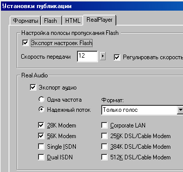 Поддержка QuickTime и RealPlayer Поддержка QuickTime Flash 5 поддерживает импорт, некоторые возможности обработки и экспорт фильмов Apple QuickTime 4. Кроме того, Apple лицензировало Flash Player и встроило его в QuickTime, что позволило включать в фильмы QuickTime графику Macromedia Flash, анимации и интерактивные эффекты. Поддержка Flash 5 для QuickTime 4 подразумевает, что Web-разработчики могут вводить характерные элементы интерфейса Flash в фильмы QuickTime. Пользователи Web таким образом получают возможность наслаждаться потоковым видео с элементами интерфейса Macromedia Rash. В фильм QuickTime можно ввести средства навигации и управления, текстовые эффекты, анимацию и многое другое. Подробные сведения об интеграции Macromedia Flash и QuickTime можно найти в Интернете по адресу www.macromedia.com/software/flash/qt4/ Поддержка Real Player Аниматорам и разработчикам Flash 5 предлагает возможность публиковать их произведения для RealPlayer G2 и RealPlayer 7 и 8. В настройках публикации вводится поддержка экспорта необходимых потоковых треков RealAudio, поддержка поиска, а также код SMIL, гарантирующий корректность воспроизведения в RealPlayer. Авторы могут устанавливать параметры звука, кроме того, поддерживается технология SureStream, обеспечивающая качественное воспроизведение для различных типов сетей. Поддержка RealPlayer 8 (рис. 15.28) позволяет разработчикам создавать не только анимации RealFlash, но также приложения для электронной коммерции, например, для просмотра покупателем выбранного товара. ![]() Рис. 15.28. Macromedia Flash 5 поддерживает публикацию в форматах QuickTime и RealPlayer Инструменты разработчика ActionScript Текстовый редактор ActionScript и Debugger Впервые возможность создания сложных интерактивных эффектов была добавлена во Flash 4: тогда были введены переменные, условная логика и манипуляция свойствами объекта во времени. Способы использования этих возможностей были понятны для дизайнеров, но несколько ограничены для серьезных программистов. Создаваемое этими средствами содержание было достаточно сложным: это были Web-приложения, игры и развитые интерфейсы пользователя. ![]() Рис. 15.29. Панель Object Actions - визуальный инструмент для разработки Web-приложений во Flash 5 Во Flash 5. предлагается знакомый и доступный интерфейс для создания интерактивных эффектов, но значительно расширен инструментарий разработки Web-приложений. Новые инструменты (рис. 15.29, 15.30) позволяют создавать диалоговые компоненты многократного использования и обеспечивают быстрое развитие. Важнейшие особенности: