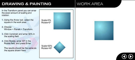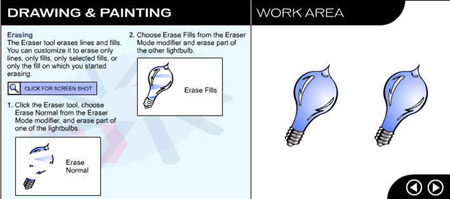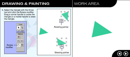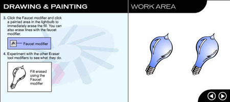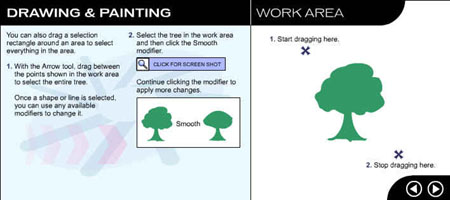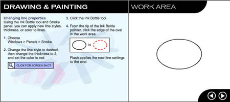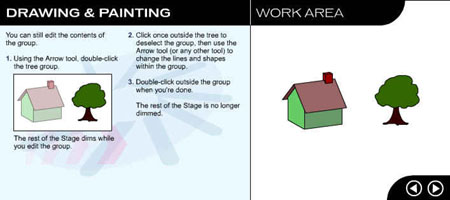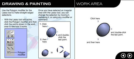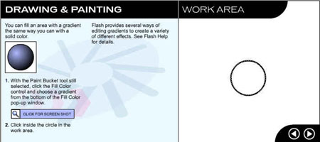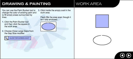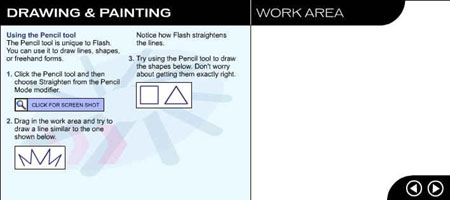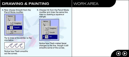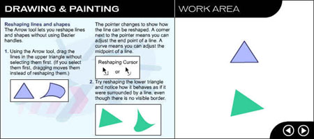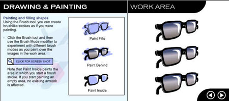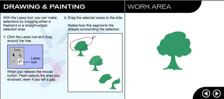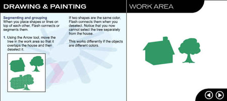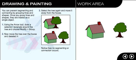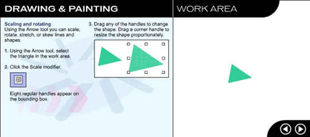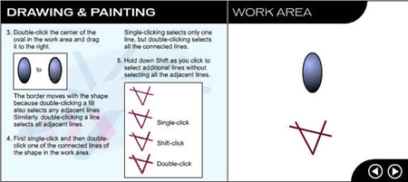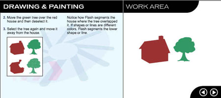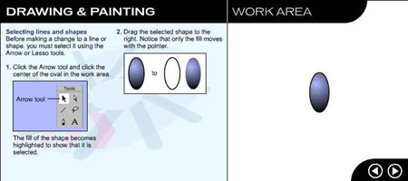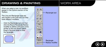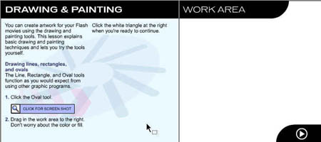 Перейдите на следующую страницу урока, щелкнув на стрелке в рабочей области. ![]() Рис. 1.3. Начальное окно урока, посвященного рисованию и закрашиванию