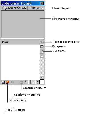 В правой части окна Timeline (рис. 2.8) фильм представлен в виде упорядоченной во времени последовательности кадров ("кинопленки"). Содержание каждого отдельного кадра создастся и редактируется на Столе. В левой части окна Timeline фильм представлен в виде наложенных друг на друга слоев (структуры). ![]() Рис. 2.3. Окно Scene ![]() Рис. 2.4. Окно Timeline ![]() Рис. 2.5. Окно Library (Библиотека) в стандартном не расширенном виде ![]() Рис. 2.6. Окно Library (Библиотека) ![]() Рис 2.7. Окно проводника ![]() Рис 2.9. Структура и временная диаграмма фильма Отдельные слои Наиболее точно будет представить слои как отдельные кинопленки, наложенные друг на друга таким образом, что через прозрачные области кадра верхней ленты просвечивает содержание кадра той ленты, на которую он наложен. В фильме же элементы всех слоев визуально совмещаются в единое изображение. Рис. 2.9. Организация слоев фильма-ÞТаким образом можно комбинировать различные элементы в единое изображение не в одной плоскости, а в нескольких слоях. Символы и трансформы Символы - многократно используемые в фильмах Flash элементы. Существуют символы нескольких типов: графические, кнопки, фрагменты фильма, звуковые файлы и шрифты. Создаваемый символ сохраняется в библиотеке файла. Когда вы выносите символ из библиотеки на Стол, то вы создаете трансформу этого символа. Символы уменьшают размер конечного файла, поскольку количество используемых в фильме трансформ одного символа на объем файла не влияет. Flash сохраняет в файле лишь исходный символ, а для трансформ записывает только изменения исходного символа. Поэтому, чтобы уменьшить общий размер фильма, рекомендуется использовать символы для любого элемента, который появляется в фильме больше одного раза. Можно изменять свойства трансформы, не затрагивая исходный символ, а также редактировать исходный символ, не изменяя другие трансформы. Поддерживается редактирование символов "по месту" на Столе, при этом другие элементы будут видимы, по затенены. Также можно редактировать символ в отдельном окне. В окне Timeline отображается временная диаграмма только того символа, который вы редактируете. См. разд. "Редактирование символов" гл. 10.Блокирование и разблокирование символа в библиотеке с помощью Проводника фильма выполняется при помощи команды Find (Найти). Подробную информацию относительно символов и трансформ см. а гл. 10, а также урок "Символы", который можно запустить, вызвав команду Help (Справка) Þ Symbols (Символы).Символы и интерактивные фильмы Символы являются неотъемлемой частью интерактивных фильмов, а трансформы символов используются для создания в фильме интерактивных эффектов. Так, можно создать символ кнопки, которая в ответ на нажатие кнопки мыши будет изменять свой внешний вид и положение на Столе. Для создания сложных интерактивных фильмов применяется другой тип символа - фрагмент фильма. См. гл., 12.Окно Library Окно Library (Библиотека) - место, где хранятся созданные во Flash символы, а также импортированные файлы, в том числе звуковые файлы, растровая графика и фильмы QuickTime. Окно Library (Библиотека) позволяет сгруппировать хранящиеся в библиотеке элементы в различные папки, в зависимости от того, насколько часто каждый элемент используется в фильме. См. разд. "Использование библиотеки " данной главы.Панели Для просмотра, размещения и редактирования элементов в фильме Flash удобно ис