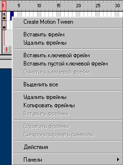 ![]() Рис. 2.18. Отображение уменьшенных копий кадров Создание ярлыков и комментариев фильма Ярлыки кадров позволяют выделить ключевой кадр во временной диаграмме и могут применяться вместо порядкового номера кадра при использовании кадров в действиях типа Go To (Перейти). Когда вы добавляете или удаляете кадры последовательности, то присвоенный кадру ярлык перемещается вместе с кадром, с учетом изменения количества и порядка кадров. Учтите, что ярлыки кадров экспортируются вместе с фильмом и потому избегайте длинных имен, чтобы минимизировать размер конечного файла фильма. Комментарии кадра удобно использовать для передачи сообщений между участниками группы разработчиков одного фильма. Комментарии кадры не экспортируются вместе с данными фильма, так что их размер значения не имеет. Чтобы создать ярлык кадра иди комментарий: 1. Выберите кадр и выполните команду Window (Окно) Þ Panels (Панели) Þ Frame (Кадр). 2. В панели Frame (Кадр) введите в текстовое поле Label (Ярлык) текст для ярлыка кадра или комментария. Чтобы сделать этот текст комментарием, введите две косых черты (//) в начале каждой строки текста. Работа с кадрами во временной диаграмме Во временной диаграмме вы работаете с кадрами и ключевыми кадрами. Ключевым называется кадр, в котором указано изменение анимации или введены действия, изменяющие фильм. Ключевые кадры - важная часть кадрированной анимации. Для изменения длины кадрированной анимации надо зацепить указателем и перетащить ключевой кадр во временной диаграмме. С обычными и ключевыми кадрами можно производить следующие операции: