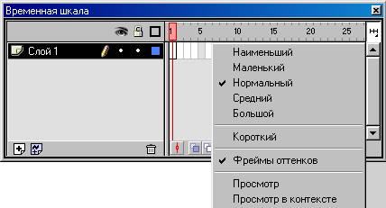 Перемещение воспроизводящей головки Воспроизводящая головка указывает на временной диаграмме текущий кадр, в то время как содержание этого кадра отображается на Столе, а в заголовке временной диаграммы при этом отображается порядковый номер кадра в анимации. Чтобы отобразить на Столе содержание определенного кадра, переместите к этому кадру воспроизводящую головку. Если вы работаете с большим количеством кадров и не видите всю последовательность одновременно, установите воспроизводящую головку посередине временной диаграммы, чтобы упростить поиск необходимого кадра (рис. 2.16). ![]() Рис. 2.16. Стрелкой показано положение головки воспроизведения Чтобы перейти к кадру, укажите его щелчком на временной диаграмме или перетащите к нему воспроизводящую головку. Чтобы установить воспроизводящую головку посередине фильма, щелкните на кнопке Изменение отображения кадров во временной диаграмме Есть возможность изменять размер и вид кадров во временной диаграмме, например, включать режим отображения в виде уменьшенных копий кадров. Это удобно применять в тех случаях, когда надо видеть всю анимацию сразу, но тогда временная диаграмма занимает больше места на экране. Чтобы изменить вид кадров во временной диаграмме: