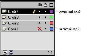 Для того чтобы изменить количество слоев, отображаемых во временной диаграмме, зацепите курсором и перетащите нижнюю границу временной диаграммы, отделяющую ее от области Стола (рис- 8-2). ![]() Рис. 8.2. Перемещение нижней границы временной диаграммы Редактирование слоев Слой, подлежащий редактированию, необходимо сделать активным. Рядом с именем активного слоя отображается значок Слои можно скрывать - делать невидимым их содержание или показывать объекты слоя и виде цветных контуров, чтобы они не мешали редактировать объекты на другом слое и не загромождали рабочую область. Для того чтобы выделить слой. выполните один из следующих шагов: