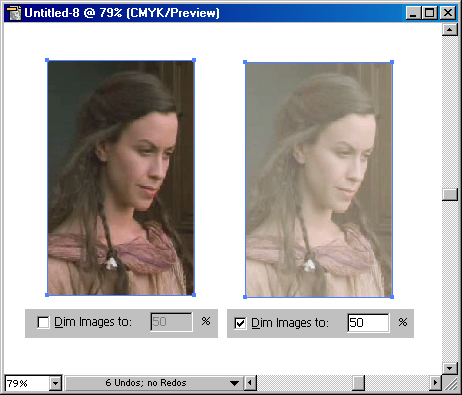Флажок Dim Images to (Фоновый режим) (рис. 10.14) в диалоговом окне Layer Options (Параметры слоя) "отвечает" за представление импортированных точечных изображений на данном слое: это может быть полноцветное представление (флажок не установлен), которое при большом разрешении и размере изображения может очень сильно замедлять работу, и упрощенное (при установленном флажке и заданном проценте прозрачности в диапазоне от 0 до 100%), которое не требует больших временных ресурсов. Еще одним преимуществом такого упрощенного ("тусклого") представления является возможность работать поверх изображения, например, с векторной маской или векторным контуром.