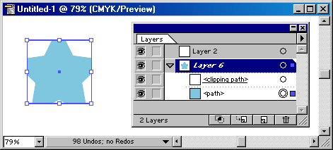 Для создания обтравочной маски следует в палитре Layers (Слои) выделить требуемый слой или группу, учитывая, что самый верхний объект превратится в ограничивающий отображение контур. Затем надо нажать кнопку Make/Release Clipping Mask (Создать/Исключить обтравочную маску) ( Этой же цели служит команда Make Clipping Mask (Создать обтравочную маску) меню палитры. После выполнения команда заменяется на команду Release Clipping Mask (Исключить обтравочную маску).