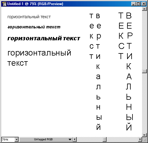 Инструменты группы Type (Текст) служат для набора горизонтального или вертикального текста в любом месте документа.