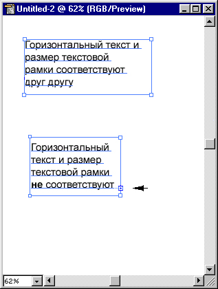 Если в текстовом прямоугольнике набрано текста больше, чем в состоянии отобразиться при данных параметрах шрифта, то в правом нижнем углу контура прямоугольника (в контурном режиме всегда, а в обычном режиме при выделении прямоугольника с текстом) выводится квадратик со знаком "плюс" (рис. 11.2).