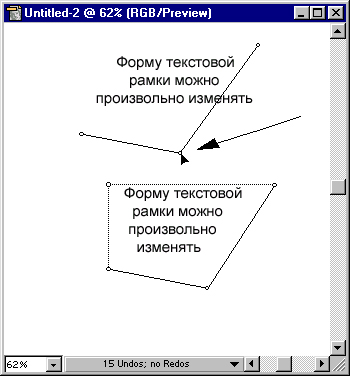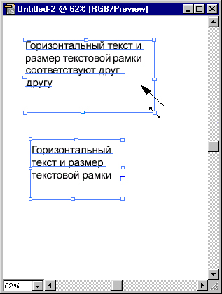 Для создания блочного текста с помощью инструмента Horizontal Type (Текст) ( Включив один из указанных текстовых инструментов, нужно создать текстовый прямоугольник тем же способом, которым рисуется объект при помощи инструментов Rectangle (Прямоугольник) или Ellipse (Эллипс): из одного угла по диагонали до противоположного. Полученный текстовый прямоугольник не имеет ни заливки, ни обводки, поэтому в обычном режиме он не отображается и на печать не выводится-Если в художественных целях необходимо создать рамку или цветную подложку, то следует этому прямоугольнику присвоить соответствующие цвет, декоративную заливку, толщину обводки и т. д. После создания текстового прямоугольника в его левом верхнем углу начинает мерцать текстовый курсор, сигнализируя "готовность к набору".