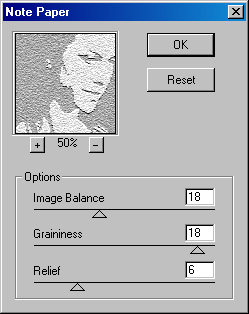 Фильтр Note Paper Фильтр Note Paper (Почтовая бумага) имитирует рисунок на грубой бумаге с большой зернистостью, что придает рисунку некоторую рельефность и эффект тиснения (рис. 12.49). Значение в поле Image Balance (Тоновой баланс) определяет в диапазоне от О до 50 соотношение уровней светлого и темного.