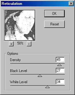 Фильтр Reticulation Фильтр Reticulation (Ретикуляция) предназначен для имитации фотографического процесса ретикуляции, происходящего при проявке пленки в растворе при повышенной температуре, в результате чего изображение покрывается характерной сеткой трещин (рис. 12.52). Значение в поле Density (Плотность) определяет плотность трещин в диапазоне от 0 до 50.