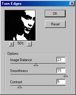 Фильтр Torn Edges Фильтр Torn Edges (Рваные края) служит для создания двухцветных изображений, которые строятся из нечетких размытых контуров (рис. 12.54). Значение в поле Image Balance (Тоновой баланс) определяет пороговый уровень светлого и темного в диапазоне от 0 до 50. Поле Smoothness (Четкость) определяет размытость контуров изображения в диапазоне от 1 до 15.