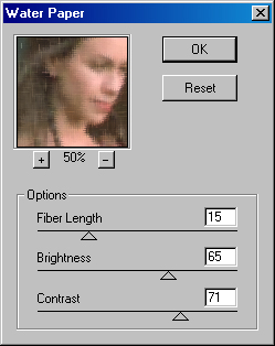 Фильтр Water Paper (Мокрая бумага) может служить некоторым, пря^лврке-нием к живописи акварелью "по мокрому" на бумаге с продольно-поперечными волокнами, структура которых может отчетливо проявляться пр»'оп-ределенных установках (рис. 12.55).