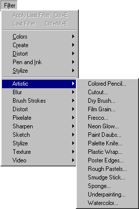 Фильтры этой группы предназначены для имитации всевозможных художественных приемов и техник, которые используются в традиционных областях искусства (живописи и графики). Сюда относится имитация рисунка карандашом и пастелью, живописи акварельными .красками, гравюры и т. д. Существование этих фильтров, конечно, относится к спорным вопросам применения компьютерных технологий в области изобразительного искусства. Суть искусства заключается не только и не сколько в применении конкретной техники или какого-то приема, характерного для отдельного вида изобразительного искусства, а в том, что выражается средствами техники или приемами — духовное и эмоциональное содержание произведения.