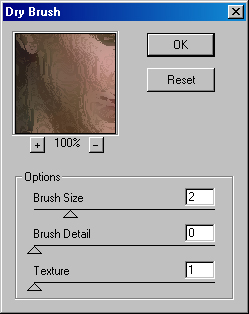 Фильтр Dry Brush (Сухая кисть) предназначен для имитации художественной техники сухой кисти (рис. 12.5), которая в традиционном искусстве при мастерском исполнении считается очень эффектной. Для этого фильтра больше подходят монохромные изображения. Значение в поле Brush Size (Размер кисти) определяет размер мазка кисти в диапазоне от 0 до 10. Поле Brush Detail (Детализация) служит для установки точности передачи изображения в диапазоне от ] до 10 (чем меньше значение, тем точнее сохраняется исходный рисунок).