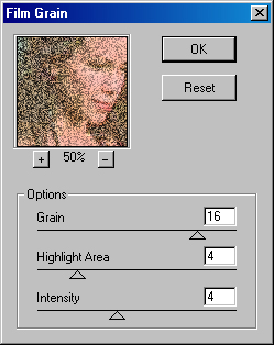 Для предварительной оценки воздействия фильтра на изображение следует воспользоваться возможностью окна Preview (Просмотр) (рис. 12.2), которым обладают диалоговые окна подавляющего числа фильтров. При размещении курсора в окне предварительного просмотра он приобретает вид инструмента Hand (Рука). Нажав кнопку мыши, можно переместить наиболее важный фрагмент изображения, чтобы именно на нем увидеть результат действия фильтра и, судя по нему, подобрать необходимые параметры действия фильтра для адекватного воплощения художественного замысла. В момент перемещения изображение приобретает исходный вид, для обеспечения этого процесса действие фильтра временно прекращается. В поле предварительного просмотра предусмотрена возможность масштабирования изображения. Для этой цели под окном расположены две кнопки: