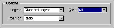 Параметры круговых диаграмм При выборе в поле Type (Тип) раздела Graph Options (Параметры диаграммы) диалогового окна Graph Type (Тип диаграммы) кнопки круговой диаграммы (восьмая кнопка слева) поле Options (Варианты) предстает в виде, отображенном на рис. 13.16. Список Legend (Легенды) предлагает варианты расположения легенд: