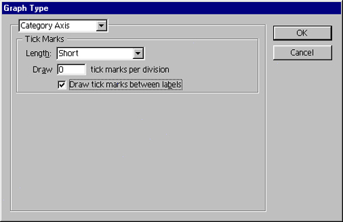Впрочем, в эти поля можно вводить любой произвольный текст. Для того чтобы определить параметры для горизонтальной оси, необходимо в списке в верхней части диалогового окна Graph Type (Тип диаграммы) выбрать вариант Category Axis (Ось категорий), который открывает новый раздел этого диалогового окна (рис. 13.18). Все параметры,этого раздела идентичны соответствующим параметрам для оси значений.