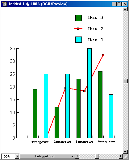 Комбинированные диаграммы Самое удивительное свойство инструментов группы Graph (Диаграмма) заключается в возможности комбинировать различные типы диаграмм (рис. 13.20). Исключение составляет только точечная диаграмма (scatter).