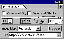 Снижение выходного разрешения Интерпретатор языка PostScript считает кривые сегменты контуров в качестве совокупности прямых отрезков, которые чем короче, тем точнее передают кривизну контура. Но уменьшение длины прямых отрезков резко увеличивает их количество, что в конце концов может превысить лимит, отведенный для растеризатора. В результате данный контур не выводится на печатное устройство (PostScript-принтер может долго принимать информацию от компьютера, "мигать" как следует по инструкции, а затем "сделать вид", что ничего не было). Одной из величин, определяющих гладкость (flatness) кривой, является выходное разрешение. Чем оно ниже, тем длиннее отрезки прямых, тем "хуже" кривая, но тем быстрее и эффективнее происходит процесс печати. Задача пользователя — экспериментально найти "золотую середину". По умолчанию в программе принято выходное разрешение 800 dpi, которое является оптимальным в очень многих случаях. Тем не менее, возможны ситуации, когда это значение следует снизить (не печатается документ, слишком медленная печать и прочие "прелести"). Для того чтобы установить выходное разрешение объекта, необходимо его выделить и с помощью команды Show Attributes (Показать атрибуты) меню Window (Окно) вывести на экран палитру Attributes (Атрибуты). В поле Output (Выход) (рис. 15.11) следует ввести необходимое значение разрешения в диапазоне от 100 до 9600 dpi. В любом случае это значение не должно превышать разрешение печатающего устройства, хотя может быть значительно меньшим (до 2—3 раз).