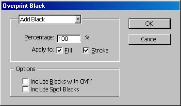 Установка флажка Include Sport Blacks (Включая заказные черные цвета) обеспечивает надпечатку для объектов с плашечными цветами, имеющими тот же процент черного, который указан в поле Percentage (Порог).