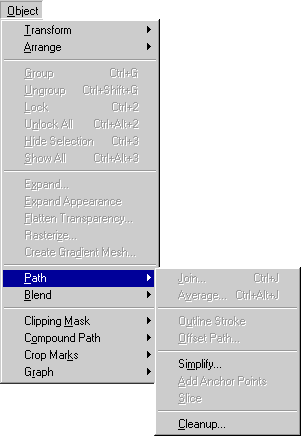 Щелчок на кнопке в полосе задач возвращает окно в активное состояние. Правая из трех кнопок закрывает окно (программа прекращает работу). Если при этом имеются открытые не сохраненные документы, для каждого из них будет выведено диалоговое окно с запросом на сохранение. Вид средней кнопки зависит от состояния окна. Если окно занимает часть экрана (в этом случае окно можно перемешать и изменять его размеры), то щелчком на средней кнопке можно увеличить его ("развернуть окно") до размеров всего экрана. Если окно занимает весь экран, с помощью средней кнопки можно восстановить его размеры, которые имели место до "разворачивания". Главное командное меню Под полосой заголовка расположена полоса главного командного меню (Menu Bar), которая предлагает следующие группы команд: File (Файл), Edit (Правка), Object (Объект), Type (Текст), Filter (Фильтр), Effect (Эффект), View (Просмотр), Window (Окно), Help (Помощь). Каждая группа — это совокупность команд, выполняющих функционально близкие действия. Например, меню Filter (Фильтр) включает значительное число встроенных и дополнительных команд, выполняющих роль фильтров для изображений, а меню Object (Объект) предлагает команды для работы с выделенными объектами и т. д. Пункт меню можно открыть двумя способами.