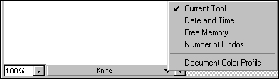 Масштаб изображения Значение текущего масштаба изображения на экране находится в левом нижнем углу рабочего окна каждого документа. Диапазон увеличения или уменьшения изображения огромен: от 3,13 до 6400%. Подробнее о способах масштабирования изображения на экране рассматривается в главе 3. Полоса состояния В нижней части рабочего экрана располагается полоса состояния (Status Bar), которая предназначена для отображения служебной информации, например, названия активного инструмента (рис. 2.11). При нажатии стрелки в правой части полосы состояния на экран выводится список режимов (рис. 2.12). Режимы полосы состояния: