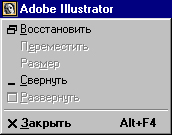 Щелчок на значке программы в левой части полосы выводит на экран оконное меню (рис. 2.8). Команды этого меню являются принадлежностью не программы, а операционной системы Windows 98/2000, поэтому если установлена (как в данном случае) локализованная версия операционной системы, команды этого меню также отображаются по-русски, даже если используется оригинальная программа Adobe Illustrator.