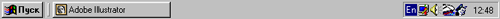 Список команд может меняться в зависимости от конкретного приложения, Чаще всего меню содержит команды для работы с окном программы. Они позволяют восстановить, переместить окно, изменить его размер, закрыть, а также перейти к другой загруженной в настоящий момент программе. Левая из трех кнопок, расположенных в правой части полосы, сворачивает окно программы, оставляя только кнопку в полосе задач (Taskbar) интерфейса Windows 98/2000 (рис. 2.9). Программа переходит в пассивное состояние, освобождая некоторые ресурсы (в частности, оперативную память) для других программ.