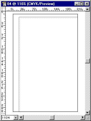 Программа дает возможность "подстройки" к текущему принтеру: если установить флажок Use Print Setup (По размеру страницы), то формат документа будет использовать параметры бумаги активного принтера. В списке Units (Единицы) можно установить другую единицу измерения, выбрав один из вариантов. И наконец, две кнопки в поле Orientation (Ориентация) позволяют определить расположение документа на печатной странице: книжная (включена по умолчанию) или альбомная. После нажатия кнопки ОК на экране отображается прямоугольник, представляющий рабочую страницу с соответствующими параметрами (рис. 3.15).