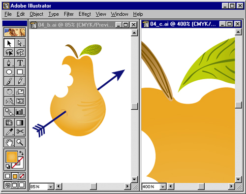 ОТОБРАЖЕНИЕ НА ЭКРАНЕ Редактор векторной графики, каким является программа Adobe Illustrator, позволяет представлять изображение в своем реальном отображении — так, как оно будет печататься, т. е. со всеми параметрами обводок и заливок, и в исходном (конструктивном) виде — так, как оно строится, т. е. только в контурном виде. Скорость отображения на экране во многом зависит от типа представления изображений, особенно тех, которые состоят из тысяч контуров и сложных заливок. Режимы отображения и "виды" на экране Для того чтобы управлять выводом изображений в рабочем окне программы, необходимо обратиться к меню View (Просмотр). По умолчанию принят режим Preview (Иллюстрация), который отображает все параметры обводок и заливок (рис. 3.1). Режим Outline (Контур) обеспечивает отображение всего документа в контурном виде (рис. 3.2). Режим Pixel Preview (Отображение в пикселах) позволяет представить изображение в том виде, как оно отображается в Web-браузерах. При активизации этого режима векторное изображение "на лету" преобразуется в точечное (рис. 3.3). Режим Overprint Preview (Отображение наложения) полезен при подготовке документа для полиграфического исполнения, поскольку позволяет увидеть области наложения цветов (overprint). Более подробную информацию о наложении красок смотрите в главе 16. В программе можно также фиксировать параметры отображения и использовать их по мере надобности.