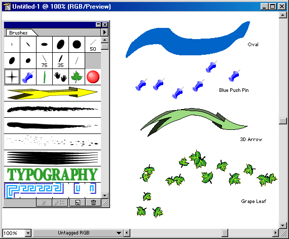 Эта палитра очень напоминает соответствующую палитру программы Adobe Photoshop, она также позволяет использовать готовые кисти, создавать новые или загружать из библиотеки. Более подробно о палитре Brushes (Кисти) смотрите в следующем разделе.