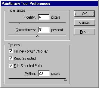 Нарисованную незамкнутую линию можно продолжить. Для этого ее следует выделить, затем подвести курсор к одной из конечных точек и, нажав кнопку мыши, можно проводить линию дальше. Возможность эта становится доступной, если установить флажок Edit Selected Paths (Редактировать выделенные контуры) и определить расстояние в диапазоне от 2 до 20 пикселов.