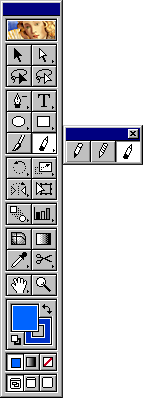 Создавать контуры можно с помощью нескольких инструментов, расположенных в палитре инструментов. Достоинством векторных контуров является возможность в любой момент изменить как количество опорных точек и соответственно количество и форму сегментов, так и размер, форму, расположение и заливку всего объекта. Инструменты группы Pencil Инструменты группы Pencil (Карандаш)(рис. 5.3) предназначены для рисования произвольных линий "вручную" и удаления их фрагментов.
