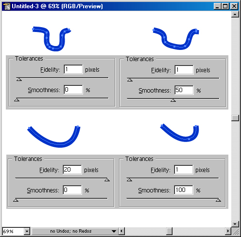 Инструмент Pencil Основным инструментом в группе является инструмент Pencil (Карандаш), назначение которого состоит в создании свободных линий. В результате работы этого инструмента получается, тем не менее, векторный контур, в котором опорные точки расставляются программой автоматически. После прекращения рисования инструментом Pencil (Карандаш) полученный контур, как и любой контур, доступен для редактирования. Число опорных точек зависит от длины и сложности рисуемой линии, а также от установок диалогового окна Pencil Tool Preferences (Параметры инструмента "Карандаш") (рис. 5.4), которое вызывается двойным щелчком на кнопке инструмента. В поле Tolerances (Допуск) представлены два параметра, влияющих на характер контура (рис. 5.5).
