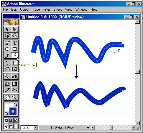 Инструмент Smooth Изменить форму контура, а именно смягчить ее, можно с помощью специального инструмента Smooth (Сглаживание)