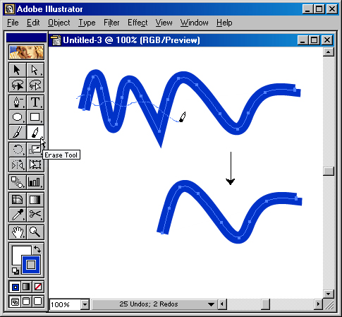 Если пользователь работает в данный момент с инструментом Pencil (Карандаш) или Paintbrush (Кисть), то клавиша [Alt] переключит их на инструмент Smooth (Сглаживание). Инструмент Erase Для того чтобы удалить часть контура, можно использовать инструмент Erase (Ластик) ( Удаление фрагментов выделенного контура происходит в результате проведения инструментом (с нажатой левой кнопкой мыши) вдоль требуемого фрагмента (рис. 5.9).