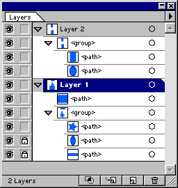 В данной версии программы принято некоторое обобщение и универсальный подход к объектам, группам и слоям. Всеми этими тремя уровнями можно управлять из единого "пульта" — палитры Layers (Слон) (рис. 6.27).