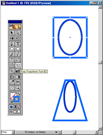 Для этого необходимо выделить объект или совокупность объектов, включить инструмент free Transform (Свободное трансформирование) (