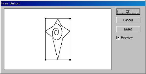 В диалоговом окне Free Distort (Свободная деформация) (рис. 7.20) выделенный объект (или совокупность объектов) размещается в прямоугольнике, в углах которого располагаются маркеры. Произвольное перемещение последних деформирует объект(-ы).