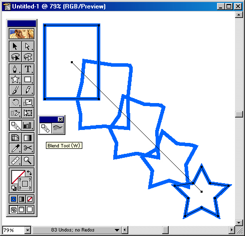 Поэтому для создания серии промежуточных объектов между объектами необходимо включить инструмент Blend (Превращение) (