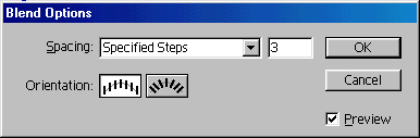 Количество промежуточных объектов и характер расположения их вдоль траектории определяются в диалоговом окне Blend Options (Параметры инструмента "Превращение") (рис. 7.23), которое вызывается командой Blend Options (Параметры инструмента "Превращение") меню Object/Blends (Объект/Превращение).
