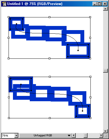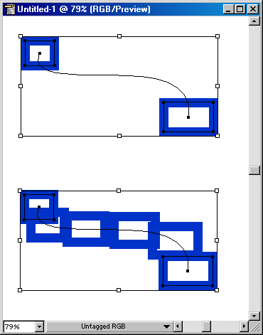Для того чтобы получить серию промежуточных объектов, можно включить инструмент Blend (Превращение) и последовательно выбирать необходимые объекты, а можно, выделив несколько объектов, применить к ним команду Make (Создать) меню Object/Blends (Объект/Превращение).