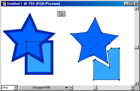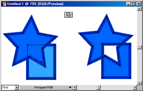 Кнопка Intersect (Пересечение) комбинирует выделенные объекты таким образом, что контуром результирующего объекта является область пересечения объектов (рис.