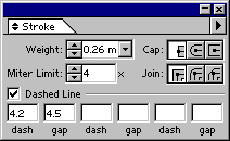 Векторному (математическому, "проволочному") контуру могут присваиваться различные параметры обводки, позволяющие усилить графическую выразительность объекта: параметры толщины, цвета и декоративного оформления. Основные параметры обводки определяются с использованием палитры Stroke (Линия) (рис. 8.23), которая вызывается на экран при помощи команды Show Stroke (Показать линию) меню Window (Окно).