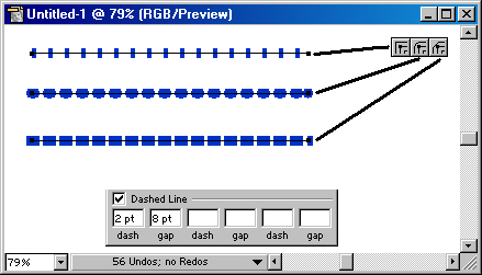 Если требуется пунктирная линия, то следует установить флажок Dashed Line (Пунктирная) и в ставших доступными полях ввести значения, определяющие длины штрихов (dash) и зазоров (gap) между ними (рис. 8.26).