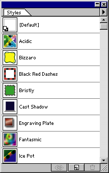 Для того чтобы вывести палитру на экран, необходимо выполнить команду Show Styles (Показать стили) меню Window (Окно). Палитра может отображать "картинки" стилей в нескольких режимах: