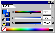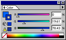 Палитра Color (Синтез) (рис. 8.3) служит для определения или изменения цвета в одной из доступных цветовых моделей. При этом для редактирования не важно, каким образом ранее был определен цвет: выбран ли он в палитре Swatches (Каталог), перенесен из другого объекта или был использован плашечный цвет из библиотеки цветов.
