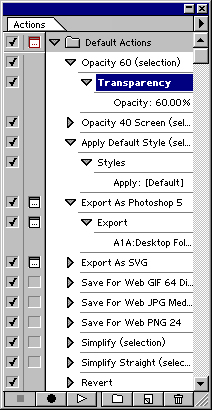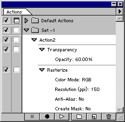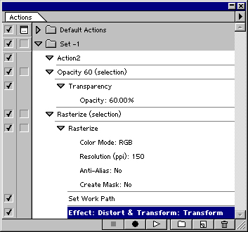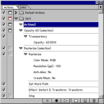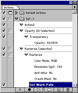 Итак, для того чтобы создать макрокоманду методом записи (recording), необходимо открыть редактируемый -документ, вывести на экран палитру Actions (Операции), выбрать в ней набор макрокоманд и выполнить одно из следующих действий.