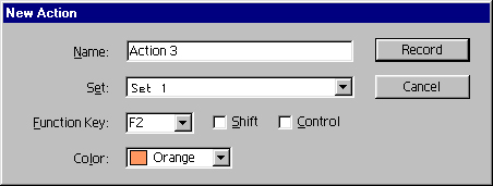 В обоих случаях на экран будет выведено диалоговое окно New Action (Новая операция) (рис. П1.4), в котором можно присвоить имя макрокоманде (поле Name (Имя)), определить набор макрокоманд (список Set (Набор)) и комбинацию клавиш для ее запуска (поле function Key '(Функциональная клавиша)), а также выбрать один из семи цветов для отображения строки макрокоманды в палитре (список Color (Цвет)).